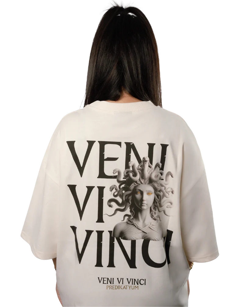La Camiseta Veni Vi Vinci Oversize de Predikatym está inspirada en la determinación y el triunfo.